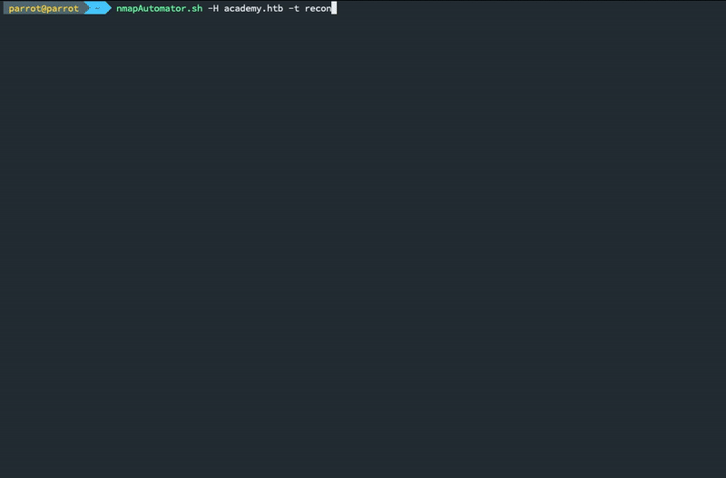 ./nmapAutomator.sh -H academy.htb -t Recon -d 1.1.1.1