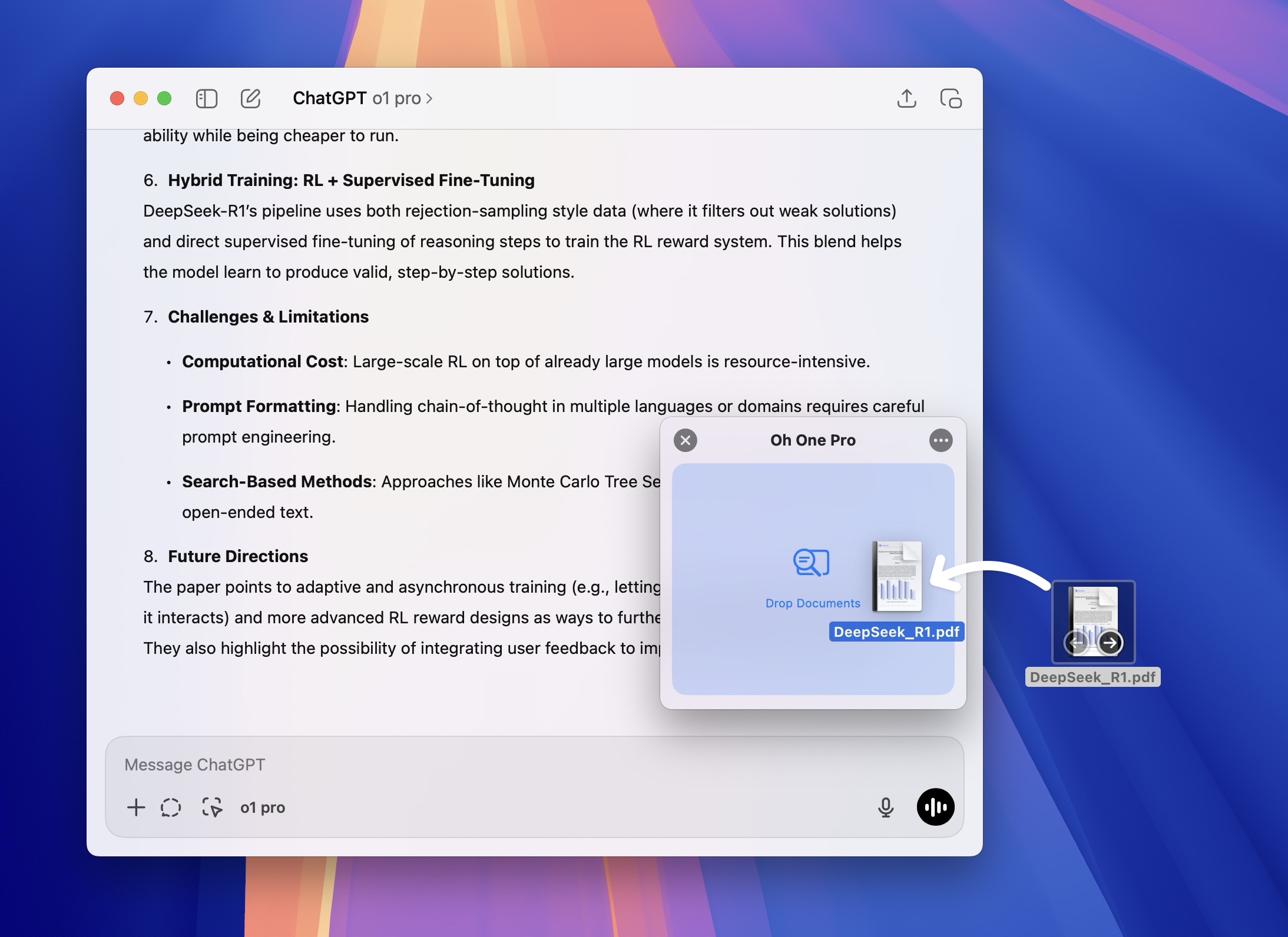 Oh One Pro is a free utility that allows you to analyze documents using ChatGPT o1-pro and o3-mini models.