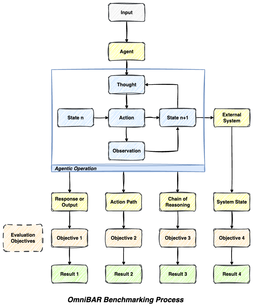Q: What makes OmniBAR different from other benchmarking tools? A: OmniBAR evaluates the full agentic loop (reasoning, actions, state changes) rather than just input-output comparisons. It supports multi-objective evaluation and works with any Python-based agent framework.