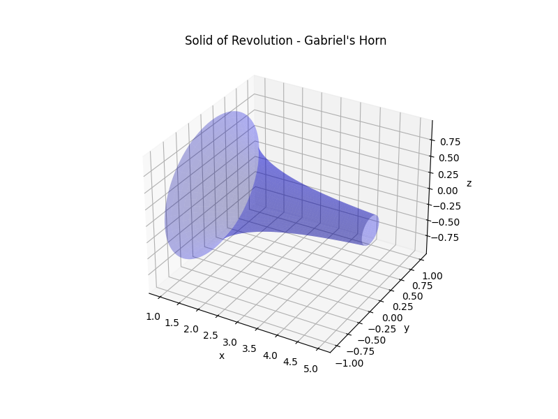 Gabriel's Horn, also known as Torricelli's trumpet, is a fascinating geometric shape that is derived from a simple mathematical function. This figure is generated from the graph of the function