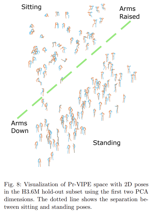 - (1) 2D pose embedding distances correspond to their similarities in absolute 3D pose space