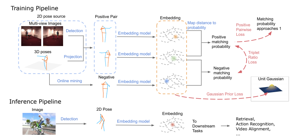- Develops a framework for mapping 2D poses to probabilistic embeddings where