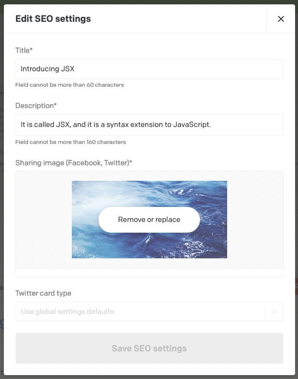 string | Accepts the image url uploaded in the seo field on any content model |