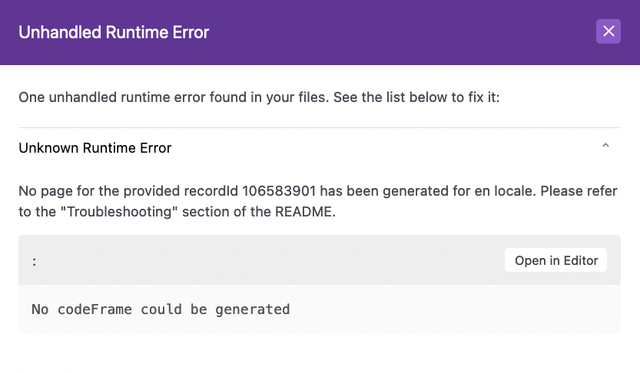 ...This error will appear whenever the Navigator component is trying to render a link to a record which has never been generated as page by gatsby-node.js for that locale.