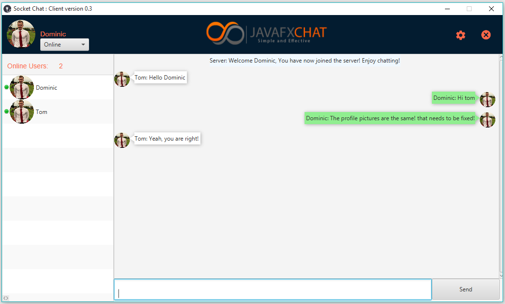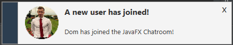 Notifications using Tray-Notifications LibraryMulti-Client SupportUsername SelectionMOTD on ConnectConnected UserlistBasic Animation- Profile Picture (