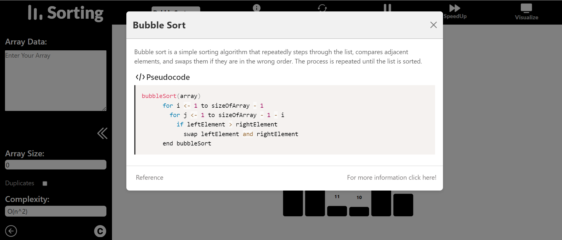 - Info Screen: Provides detailed information about the algorithm, including pseudocode and additional references. 📚