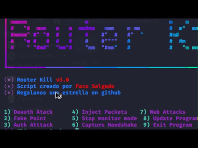 Router-kill es un framework diseñado para automatizar el proceso para atacar un router de diferentes maneras. Actualmente las redes WIFI siguen siendo vulnerables a estos ataques y este pequeño programa en BASH ayuda a automatizar a realizar dichos ataques, trabaja principalmente con dependencias muy famosas en distribuciones como Kali Linux o Parrot Security OS