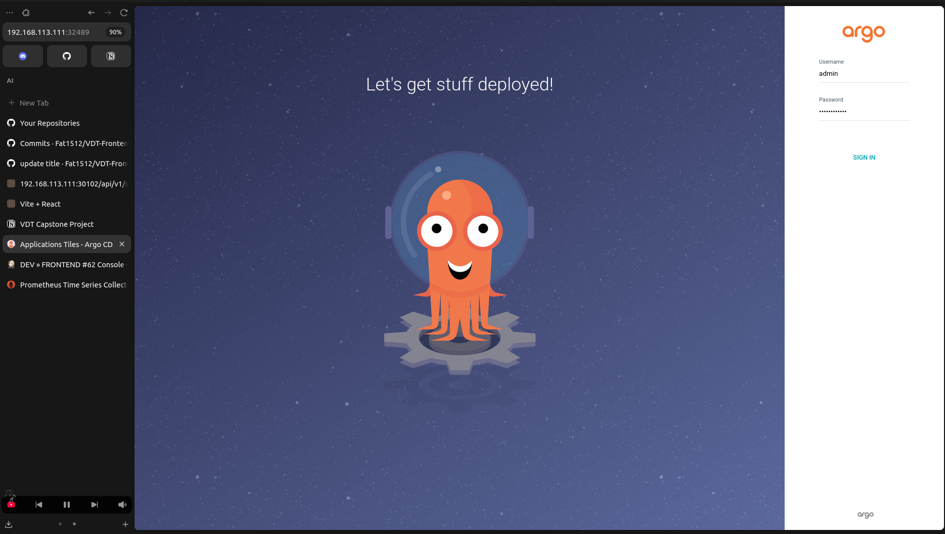 - ArgoCD Service Address: 192.168.113.111:32489
