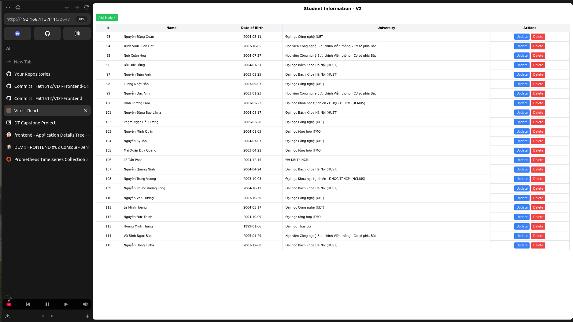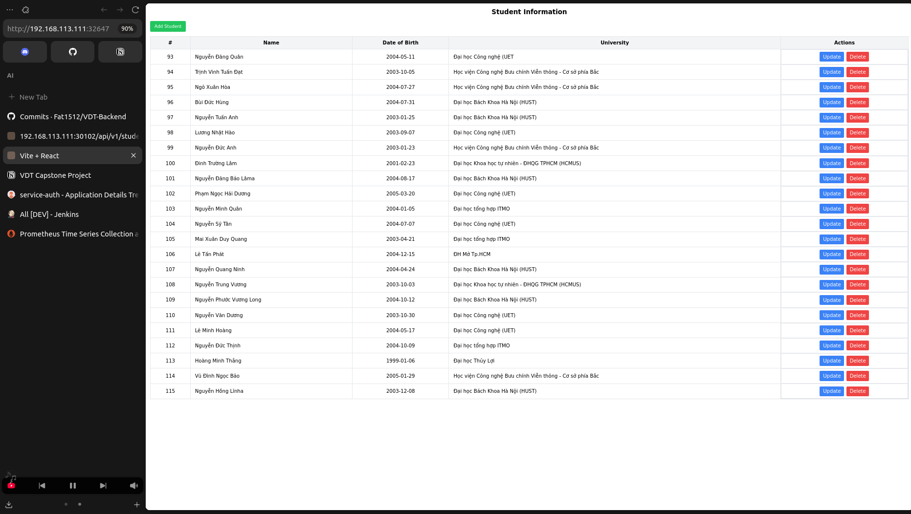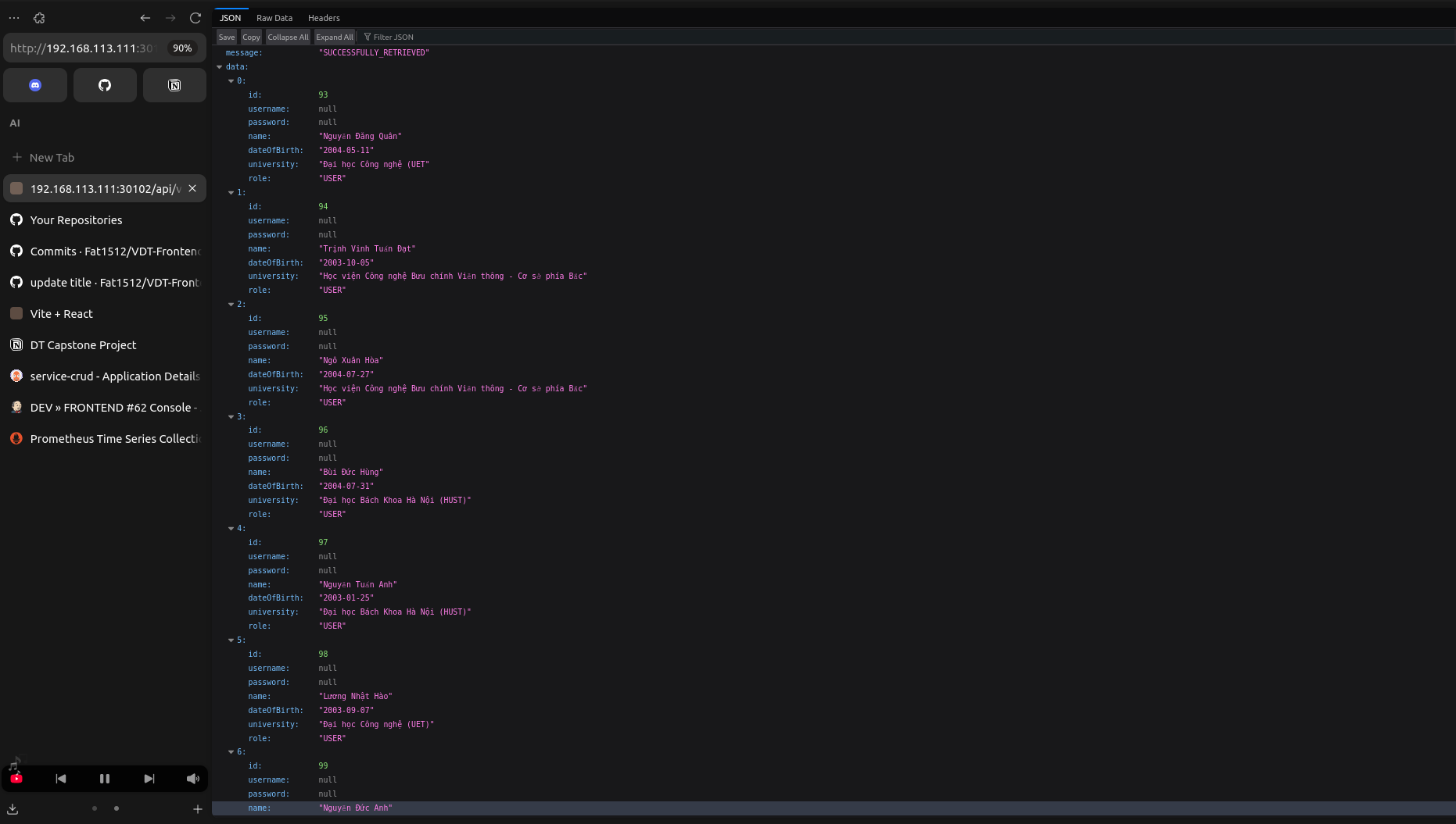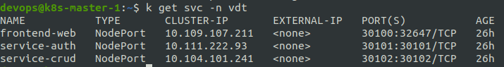 kubectl get svc -n vdt-