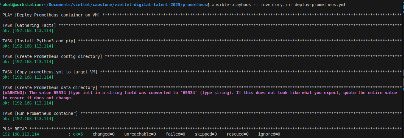 ansible-playbook -i inventory.ini deploy-prometheus.yml- SSH into monitoring server and check status to ensure that container is up: