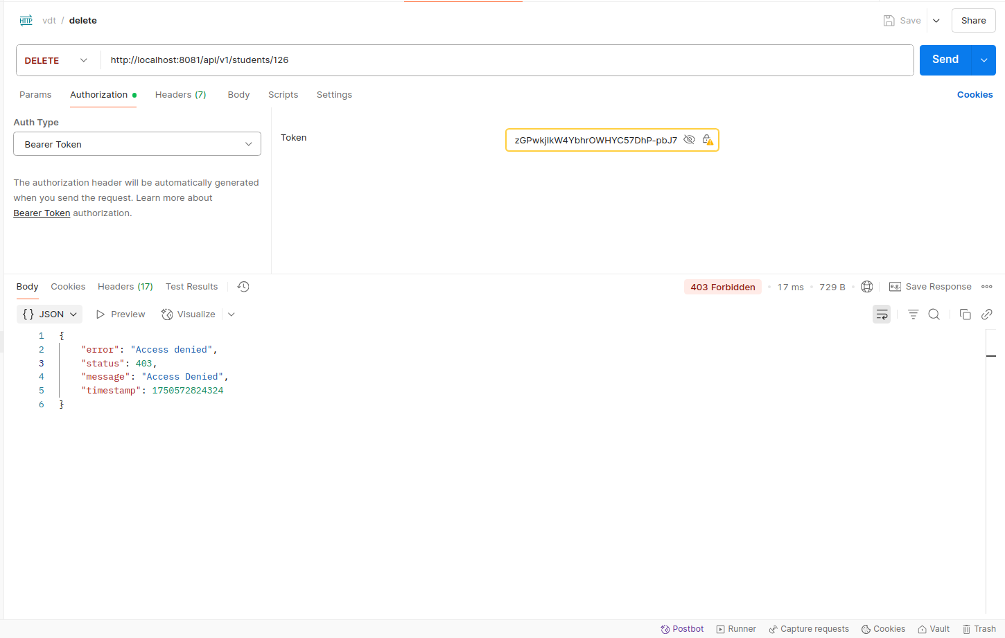 - User role is forbidden to perform delete