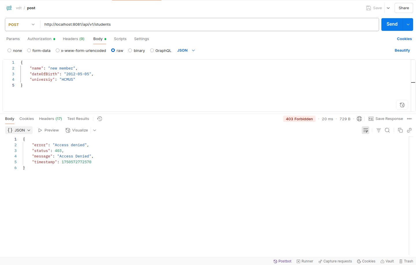 - User role is forbidden to perform post