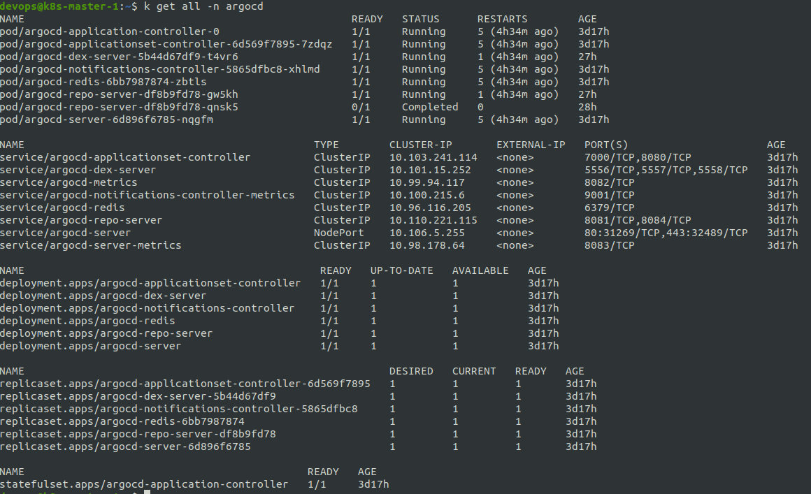 kubectl apply -n argocd -f https://raw.githubusercontent.com/argoproj/argo-cd/stable/manifests/install.yaml- Check Deployment: