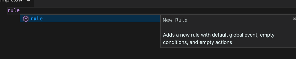 The extension also registers a custom grammar file, used for syntax highlighting. Not complete yet, but it currently recognizes rules and themes them according to the colors in the workshop editor, which is perhaps what I'm most proud of.