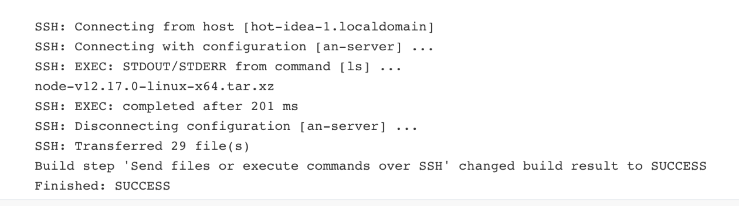 可以看到我们的代码成功构建到了这里。至此构建代码至其他服务器的一个流程也完成了。