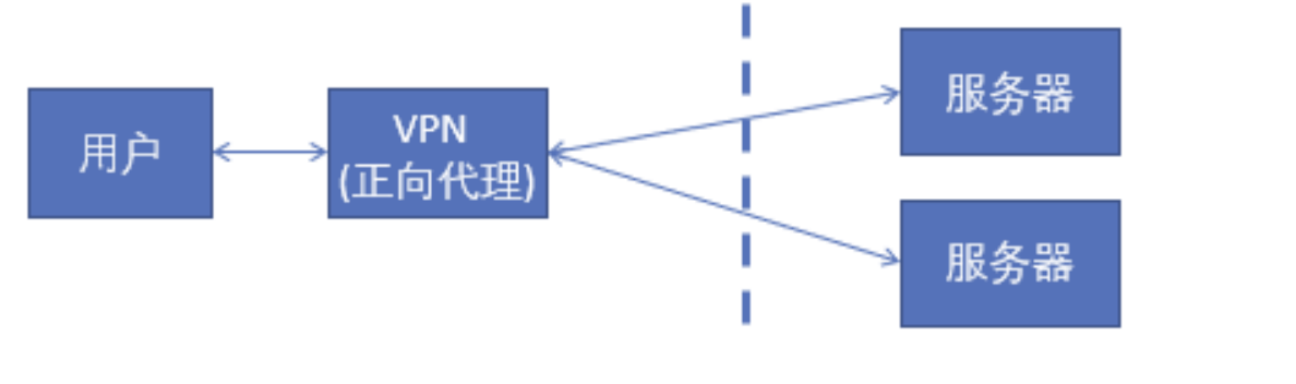 在客户端配置代理服务器,通过代理服务器进行互联网访问。代理对象是客户端,不知道服务端是谁。我们举个最直接的正向代理的例子,比如我们要访问国外的网站,速度很慢,甚至访问不到,这个时候我们就需要翻墙,使用vpn正向代理。并且vpn是在我们的用户端设置的(并不是在远端的服务器设置)。浏览器先访问vpn地址,vpn地址转发请求,并最后将请求结果原路返回来。