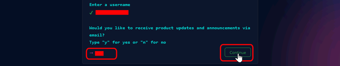 Para ello llenaras el formulario que se te mostrara como en la imagen y daras click en "Continue".