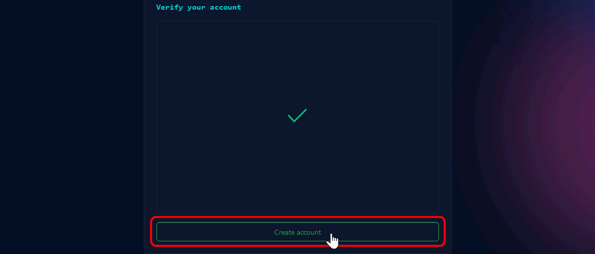 Una vez completado el formulario anterior pedira que verifiques que no eres un robot con un pequeño rompecabezas, al terminar de resolverlo, daras click en "Create account".