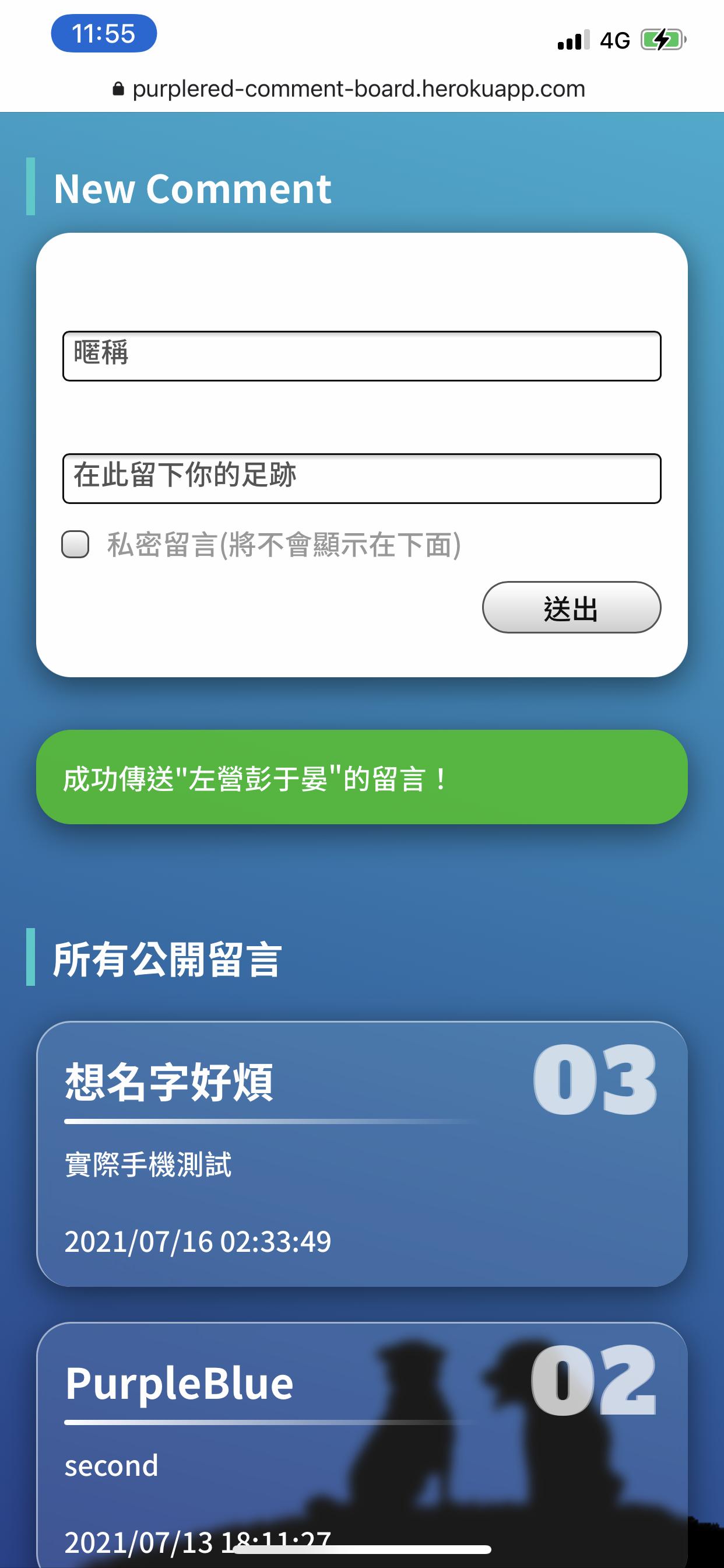 This repository is an simple SPA which everyone can leave a comment. You can decide your comment is public or private. If you choose public(uncheck the checkbox) and click the submit button, your comment will be displayed on this page immediately, without any redirecting.