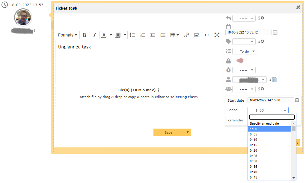 Add a "Plan this task" button as per above image, which would allow definition of a Start date, Planning duration or end date and Reminder for the task (see below). This button would effectively create a duplicate task in Planning (maybe an external task for now) and link to it from the tasklist task (similar to the ticket linking already provided).