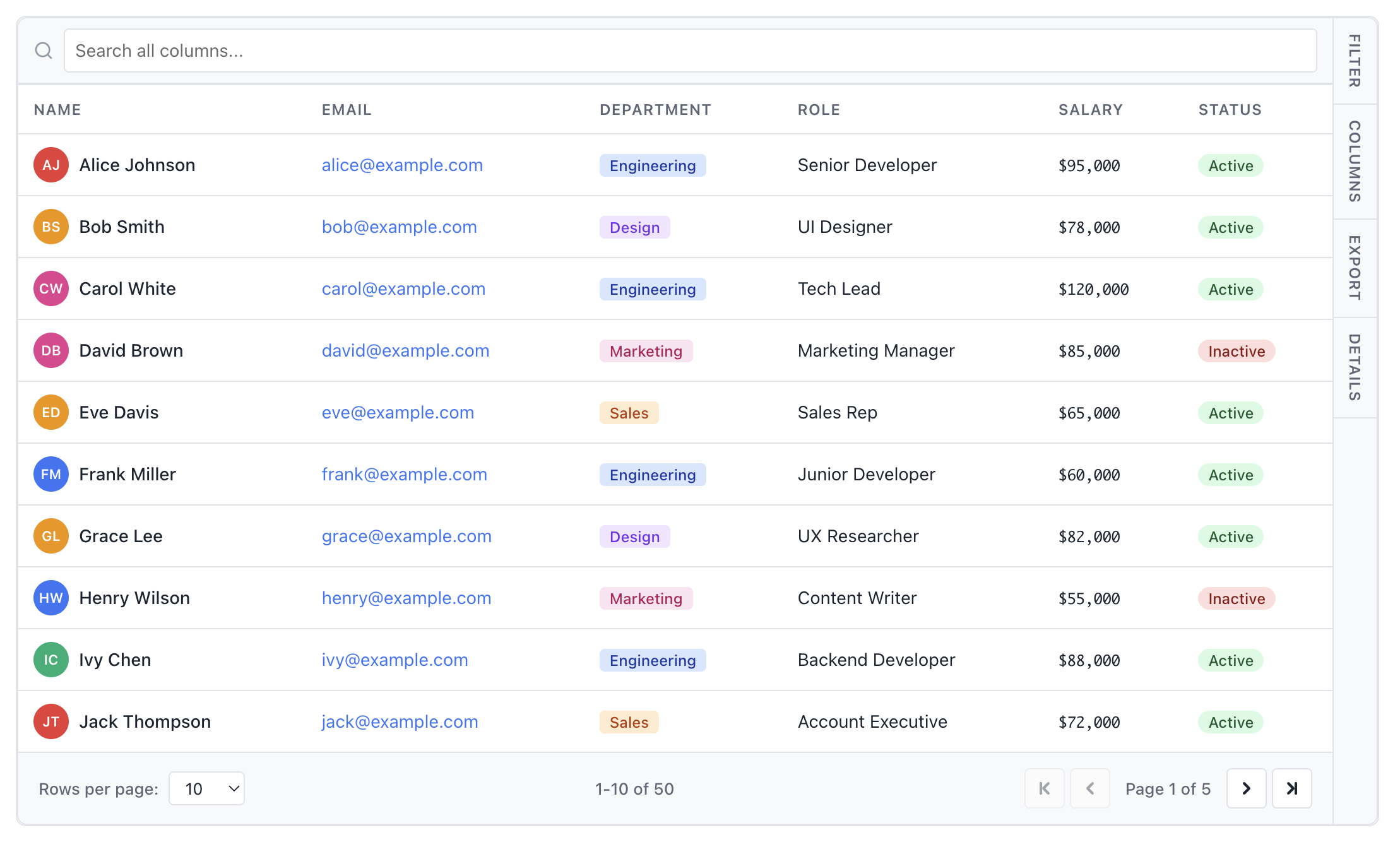 Seizen Table Enterprise-grade React Table component and plugins for serious applications. Contributing See DEVELOPMENT.md for development setup. License MIT