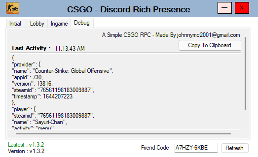 // Idle Setting Only Have {FriendCode, Username and ID}