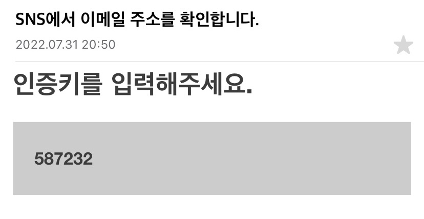 ✔︎ 인증번호 6자리 숫자 확인