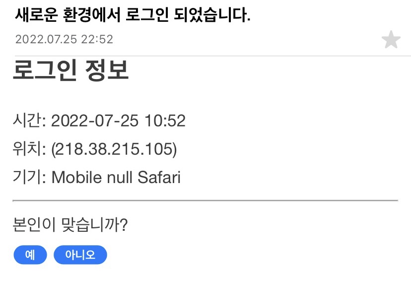 ✔︎ 본인이 로그인한 것이 아니라고 응답한 경우 -> 접속 제한 처리