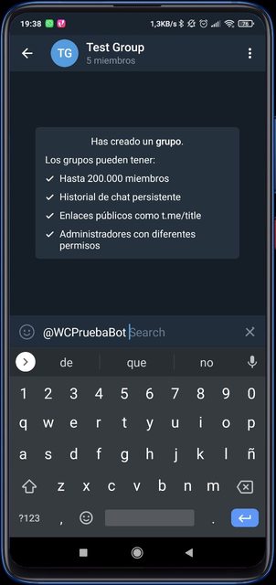 Simplemente hay que mencionar al bot, dejar un espacio y escribir lo que estamos buscando, luego seleccionar uno de los resultados