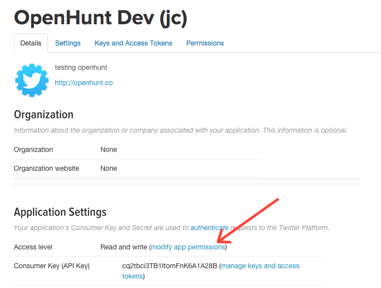 1. Click on the tab "Keys and Access Tokens". Then create a new file at config/settings.local.yml with the content: