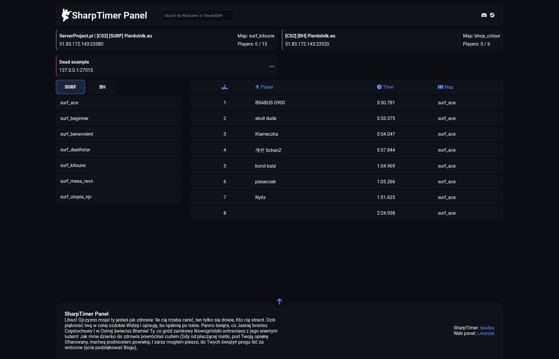 Web panel for SharpTimer - CounterStrikeSharp plugin. LIVE DEMO