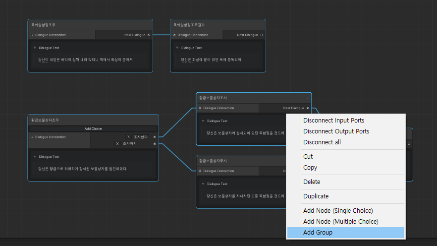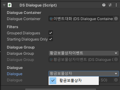 Dialogue Group프로퍼티를 눌러 원하는 대화가 속한 그룹 선택 -