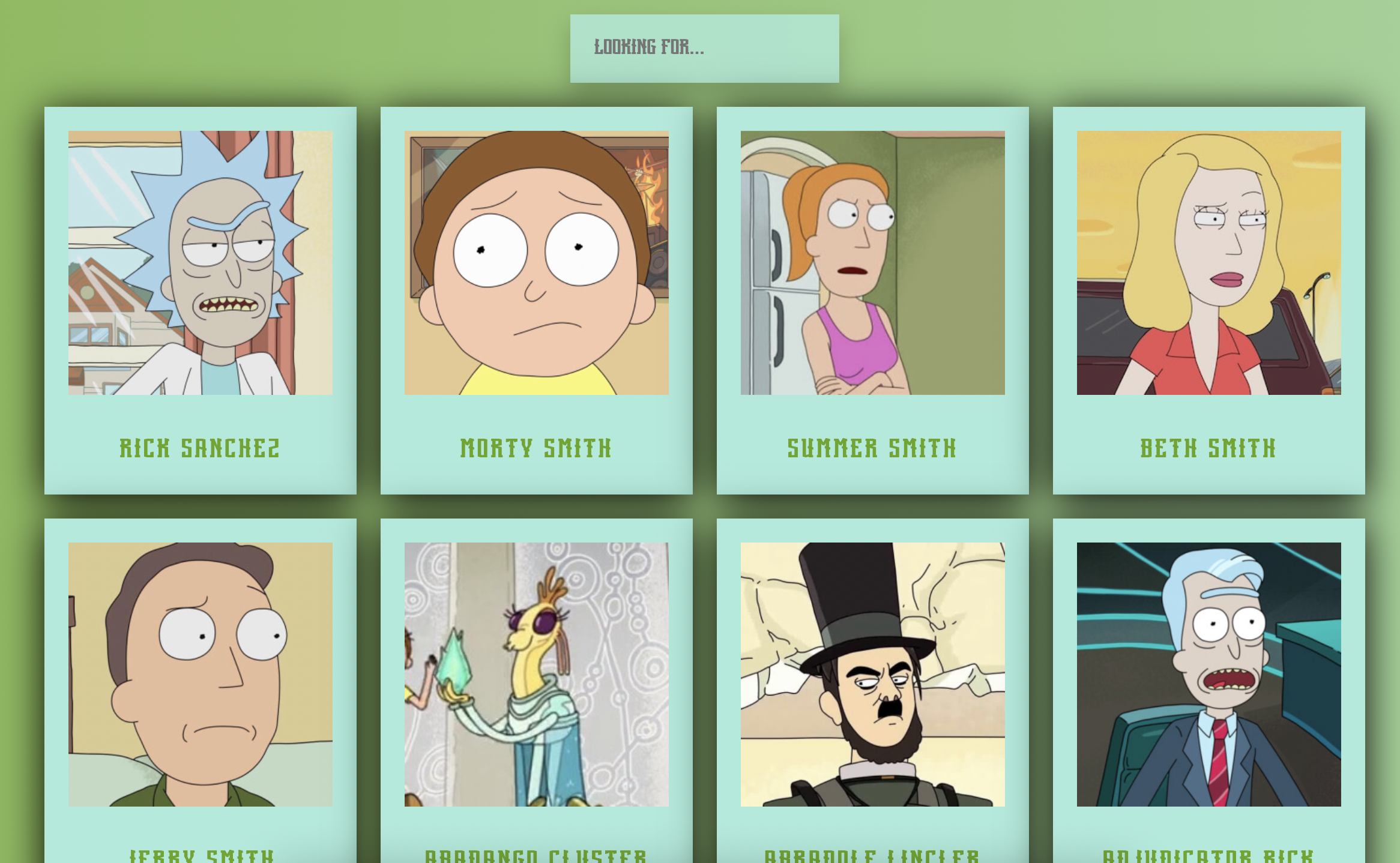 Rick-n-Morty characters application Setup clone git reposistory run npm install Scripts to utilize: npm run start - start application npm run lint - run code linter npm run test - run codebase test