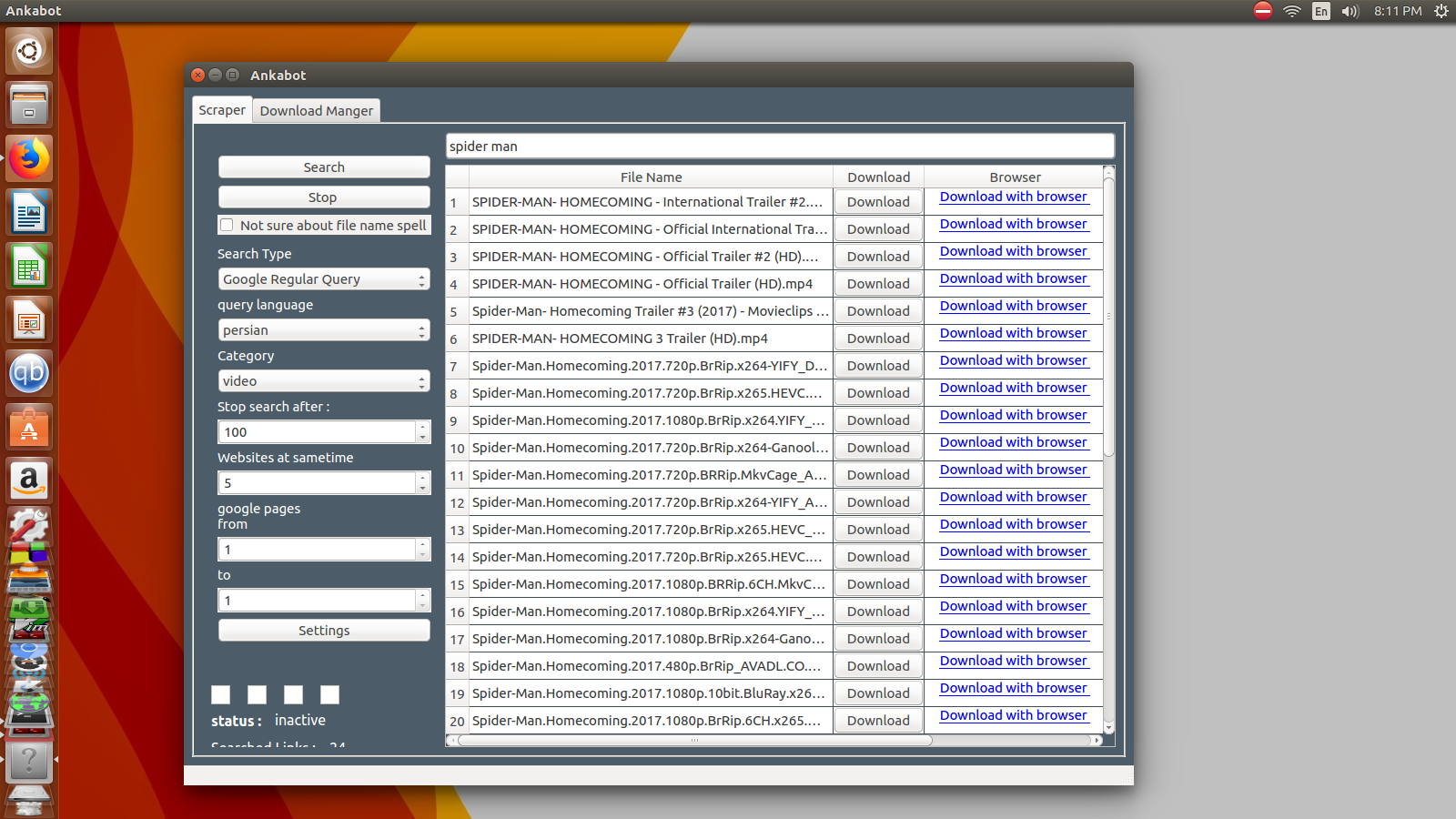 the scraper can find direct and free link of files like movies, series, software , subtitle , music , etc..
