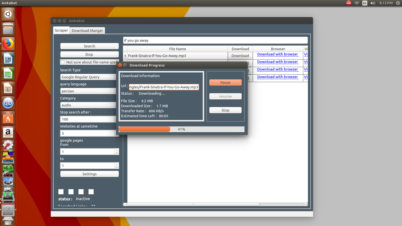 you can find files across the websites ,just give the file name to the scraper and specify your category then wait for the results .