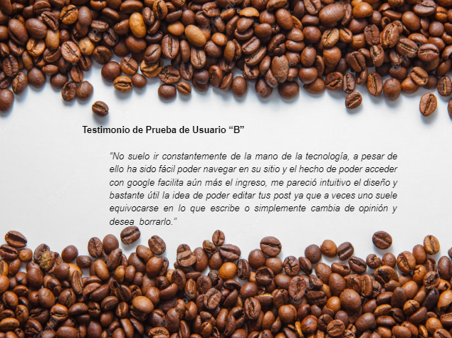 Nuestra plataforma web busca ser un punto de encuentro para la comunidad cafetera, donde la experiencia y el conocimiento se fusionan en un solo lugar. Aquí puedes compartir tus mejores descubrimientos, desde ese pequeño café escondido en una esquina hasta la última innovación en métodos de preparación. Publica tus recomendaciones, recetas y técnicas favoritas para que otros amantes del café las descubran y las prueben. Además, podrás interactuar con otros usuarios, comentar en sus publicaciones, intercambiar ideas y ampliar tus horizontes. ¡Deja que la cafeína fluya y las conversaciones se vuelvan infinitas en nuestra plataforma social del café!