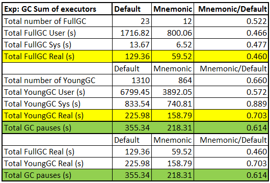 - Reduce GC Overheads as the following chart shown (collected from Apache Spark experiments)