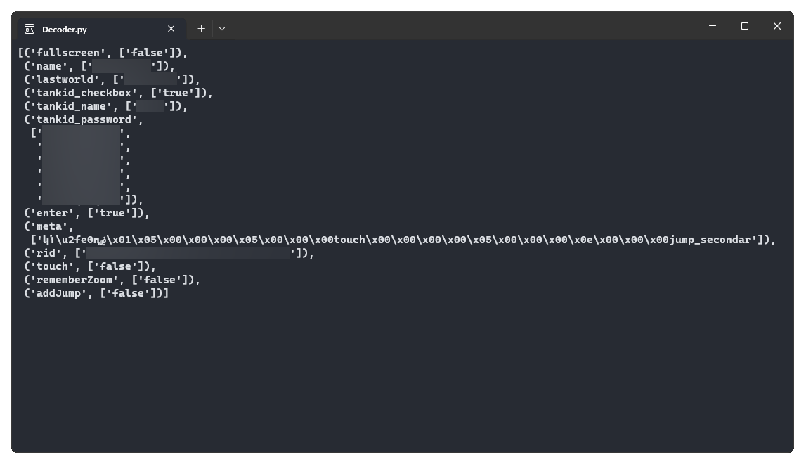 A Python script that attempts to decode and display the values from the save.dat file.