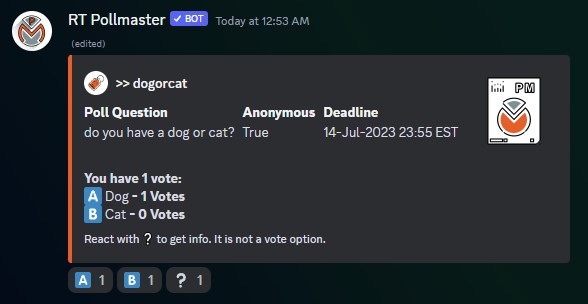 - Personalised info for each poll by reacting with ❔