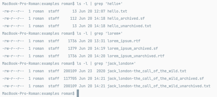 ./archiver pack --method sf <filename>or shorted./archiver pack -m sf <filename>- This will generate a new compressed file with