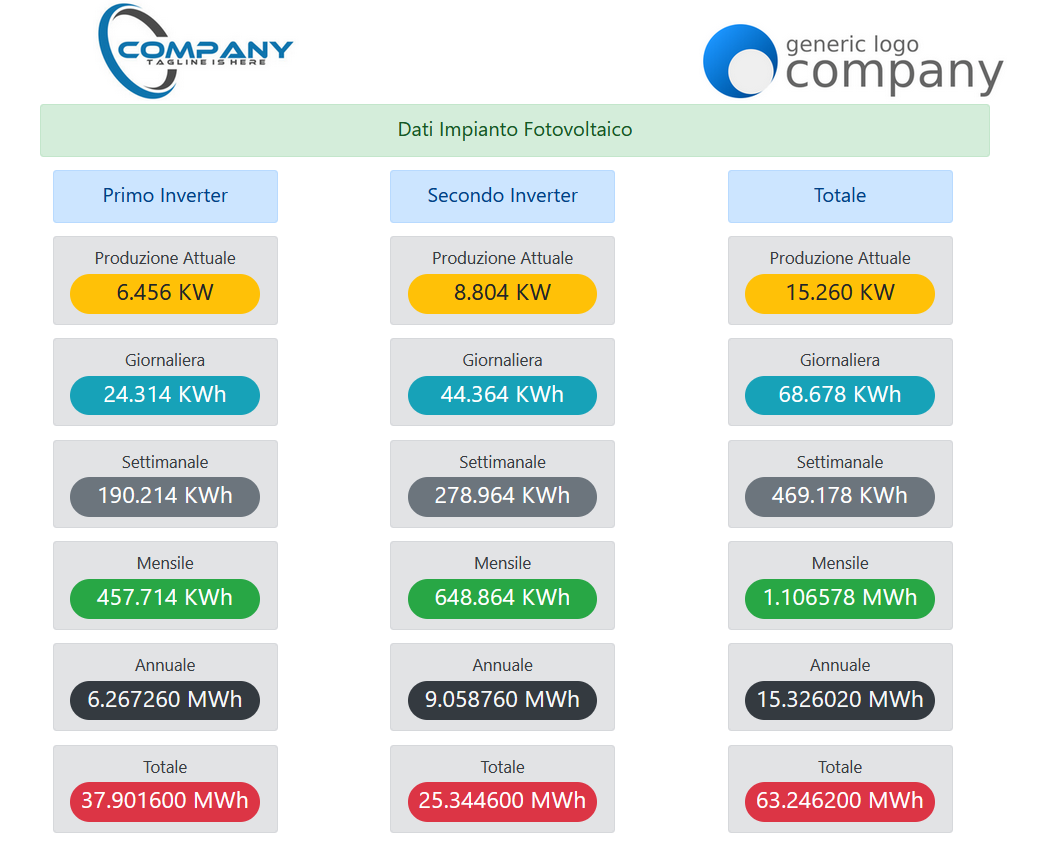 - Leggere i dati di produzione di due impianti Fotovoltaici collegati ad un Datalogger.