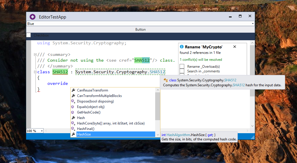 IPeekResultPresenter&IPeekResultPresentation, and create a WpfTextViewHost inCreate(). Note that peek only operates on file paths. - Rename with preview does not work.