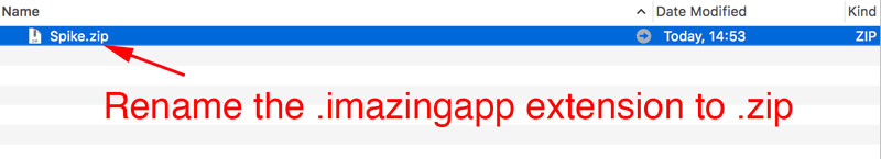 Now navigate to the folder where you asked iMazing to backup Spike's data, in this case Desktop, and you will see an .imazingapp file.