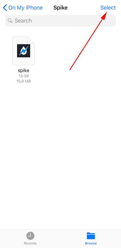 Open the Files app once again and go to Locations -> iCloud Drive. Now press the "Select" button.