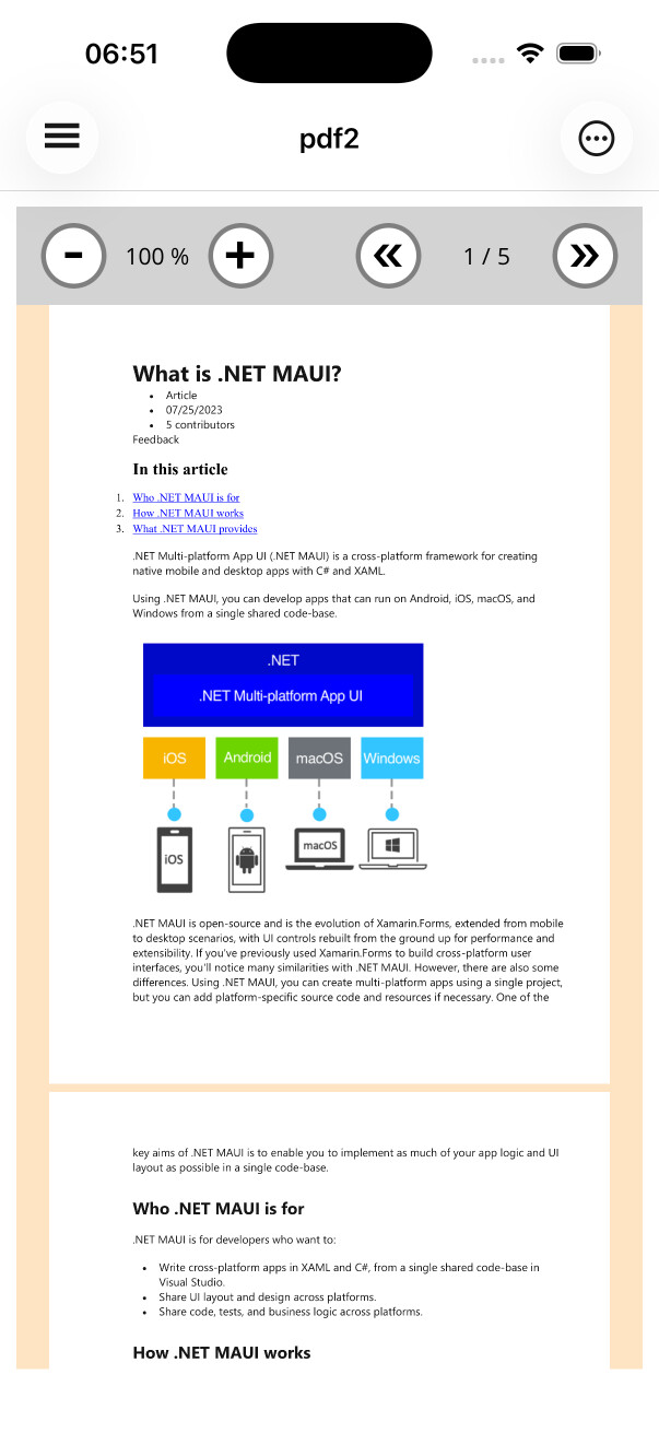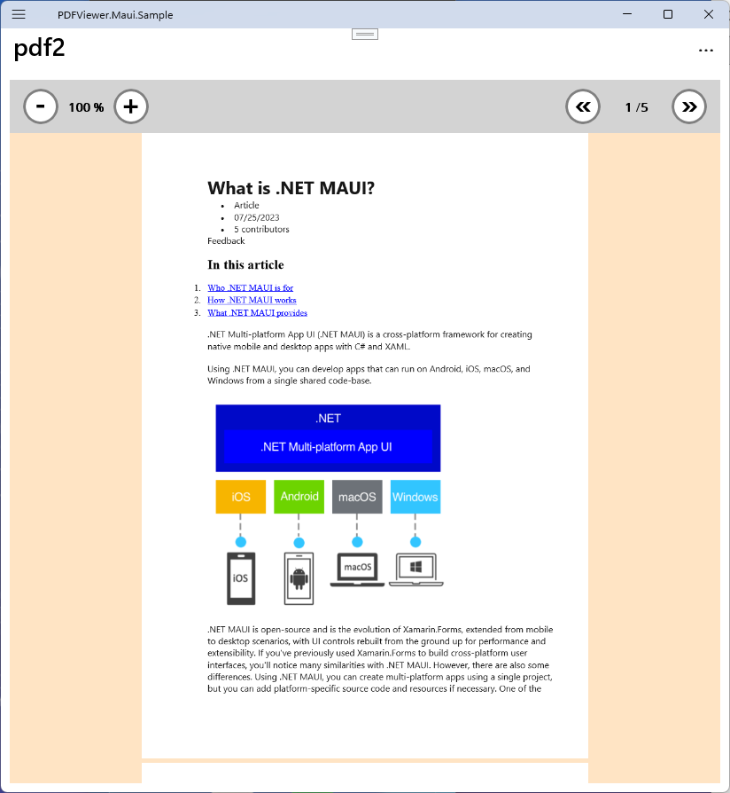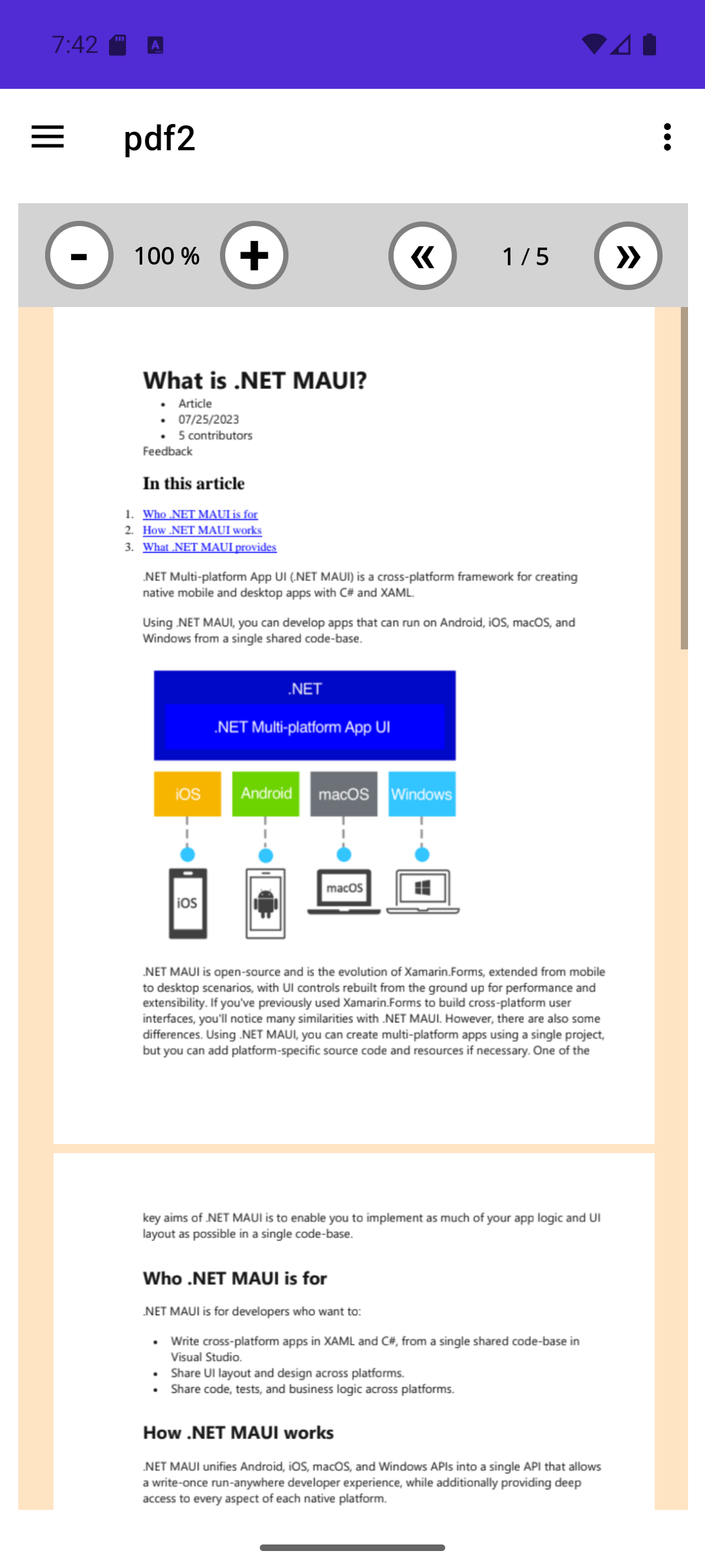 A simple Maui PDF viewer based on the nativ PDF libraries ...