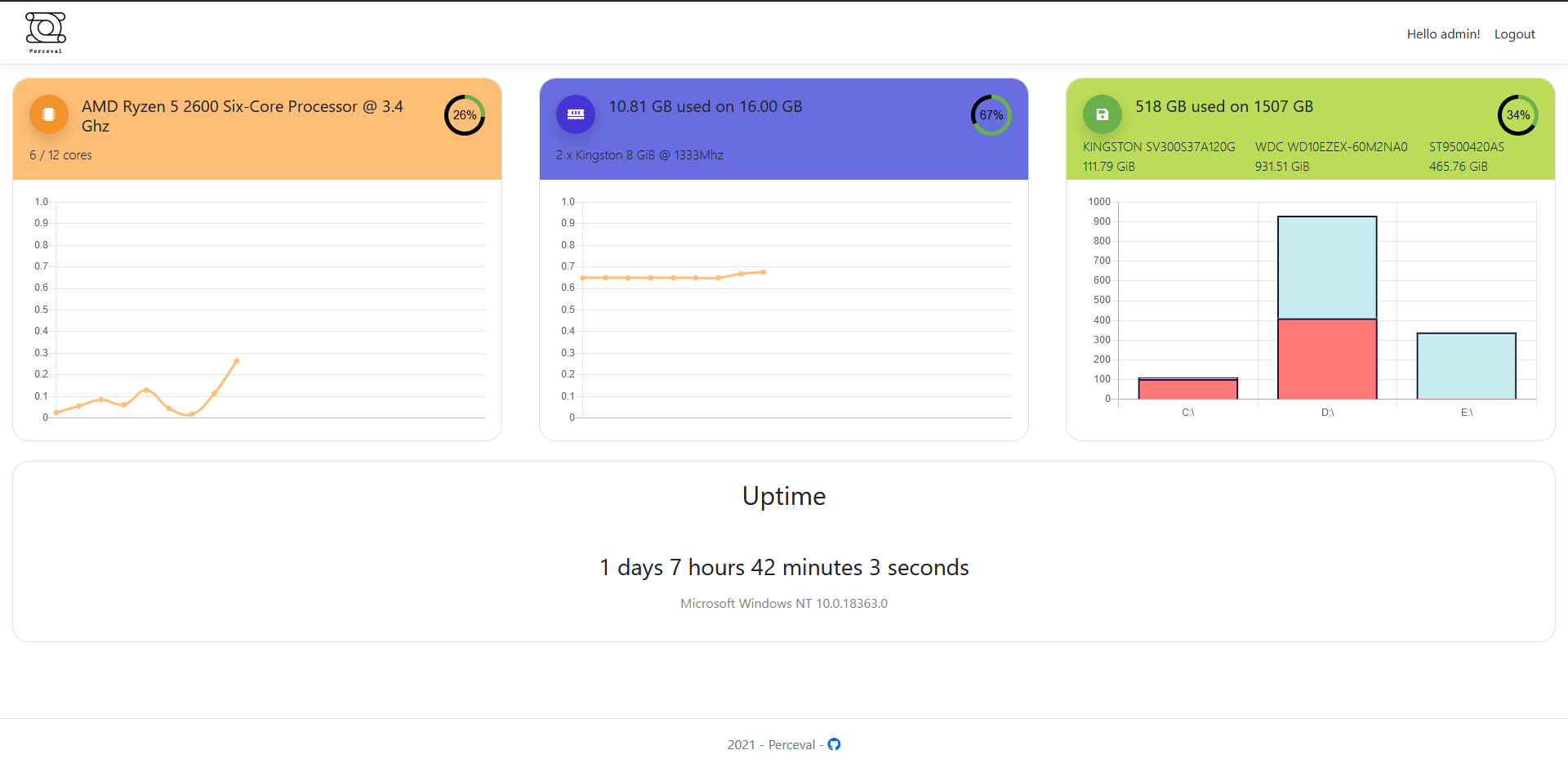 Perceval is a simple dashboard for monitoring your server.