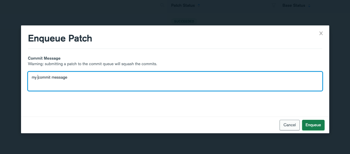 For projects that use GitHub pull requests for code review, the commit queue integrates with the PR workflow. When the PR is approved and ready to be merged, changes are added to the queue through the PR and commit queue feedback is provided in status checks on the PR.