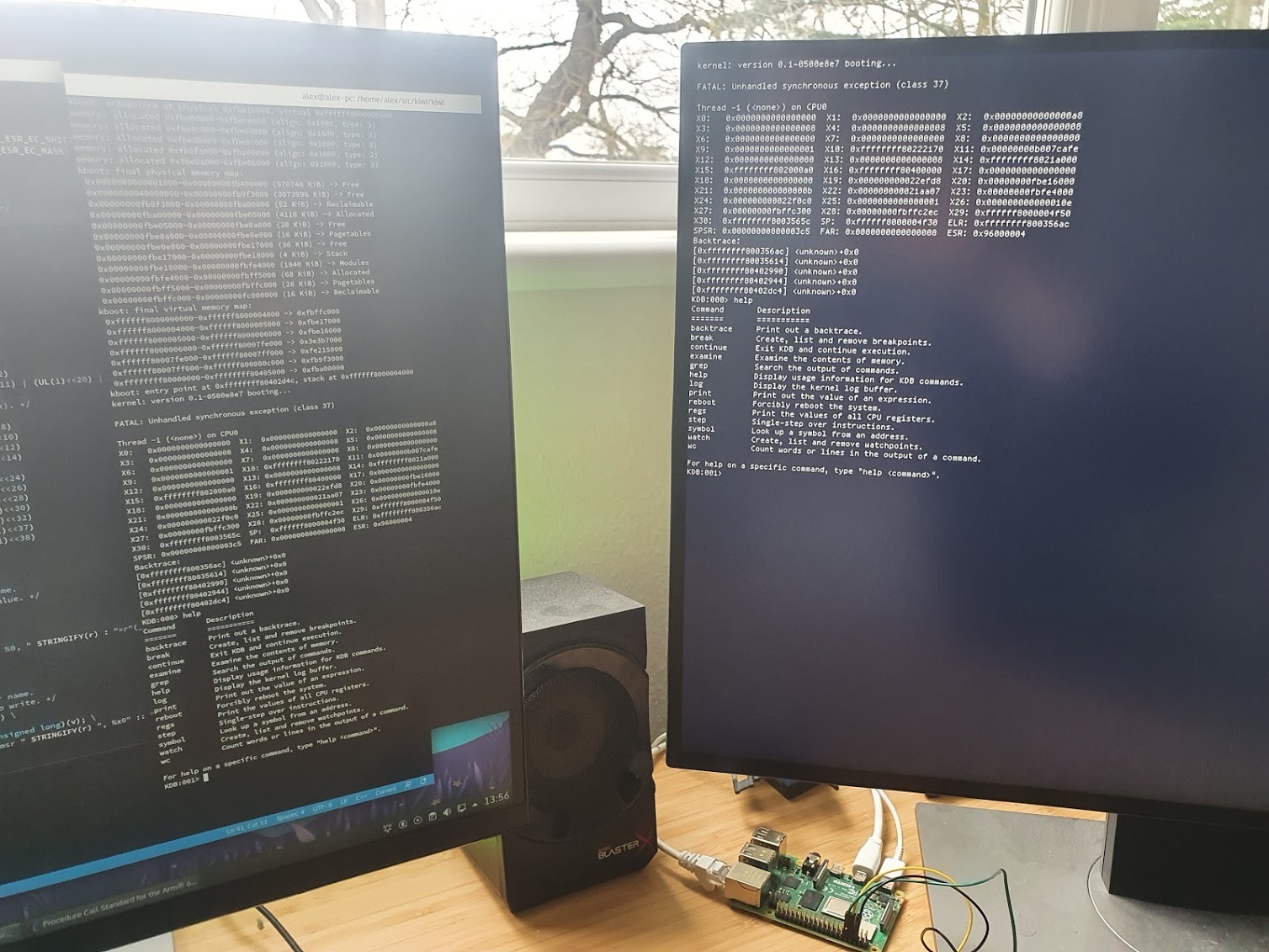 Screenshots Xterm-compatible terminal emulator, with TrueType font rendering, running Bash: Kernel debugger inspecting process/thread state: Early bring-up of ARM64 port on a Raspberry Pi: TCP/IP networking with DNS: Port of Curl/OpenSSL: Port of GNU Nano: