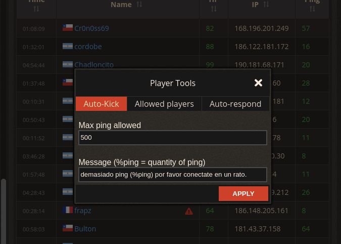 - Players tools like autokick when high ping