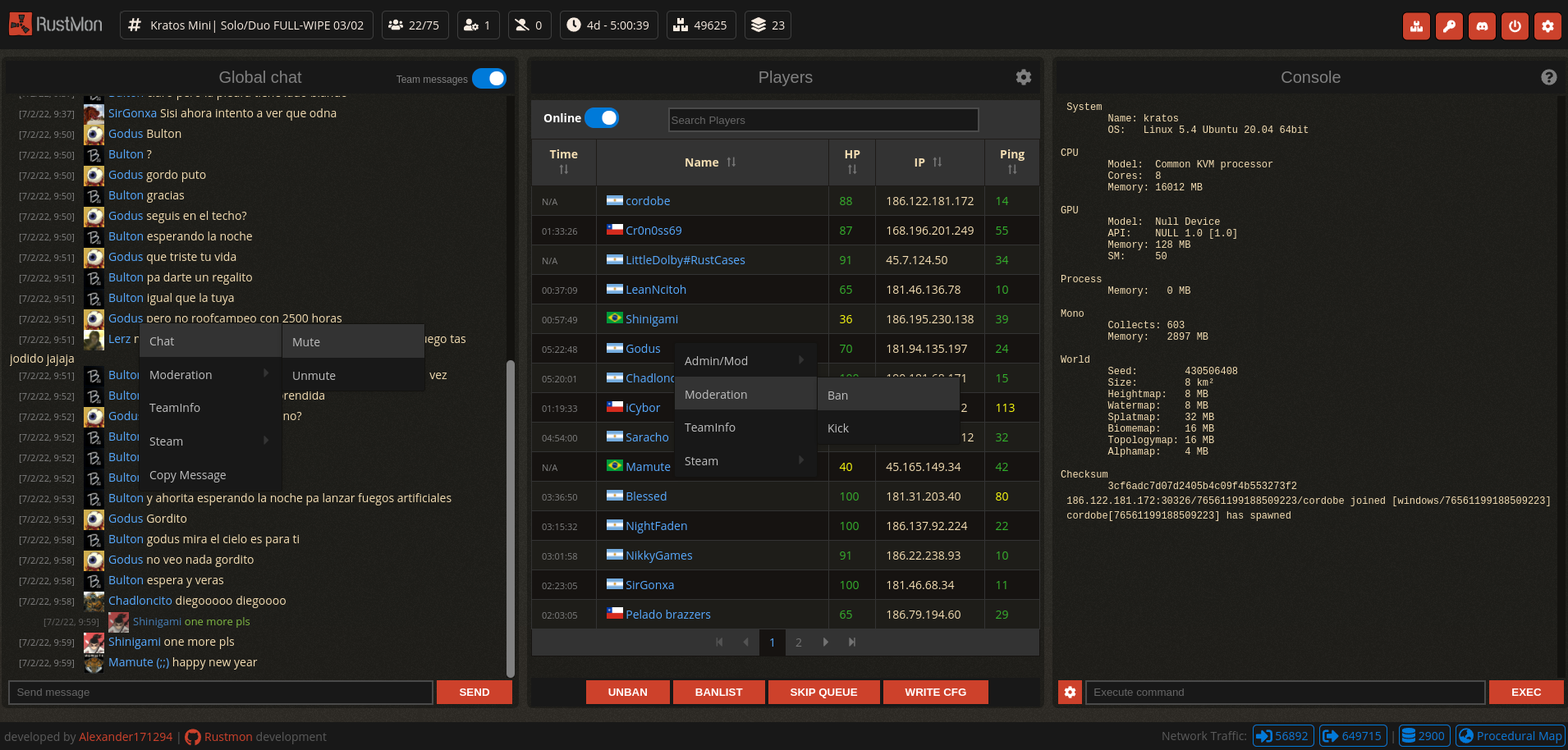 - Simple full control (Chat, Players and Console) on single screen